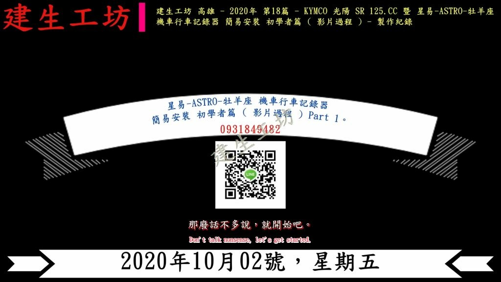 建生工坊 高雄 - 2020年 第18篇 - KYMCO 光陽 SR 125.CC 暨 星易-ASTRO-牡羊座 機車行車記錄器 簡易安裝 初學者篇 ( 影片過程 ) - 製作紀錄