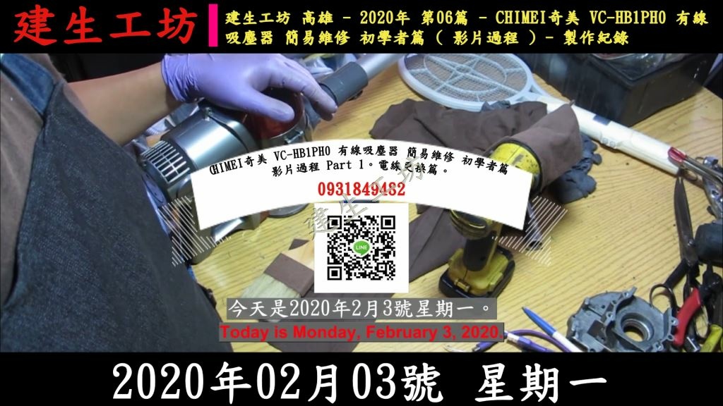 建生工坊 高雄 - 2020年 第06篇 - CHIMEI奇美 VC-HB1PH0 有線吸塵器 簡易維修 初學者篇 ( 影片過程 ) - 製作紀錄