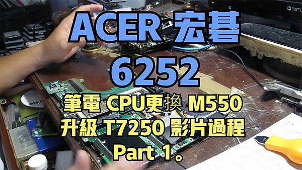 youtube 影片:ACER 宏碁 6252 筆電 CPU更換 M550 升級 T7250 影片過程 Part 1。 |