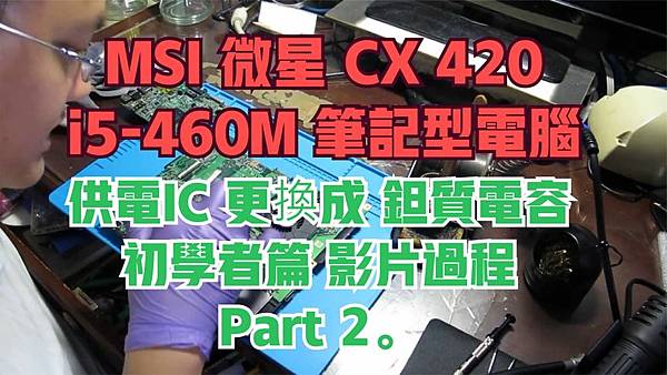 bilibili 影片:MSI 微星 CX 420 i5-460M 筆記型電腦 供電IC 更換成 鉭質電容 初學者篇 影片過程 Part 2。 |