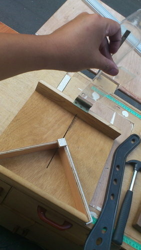 | 03-測試實況,看起來相當簡單,可是光是調整所需的角度,可是相當費神的,所以我相信可以切割出相當完美的45度角 |