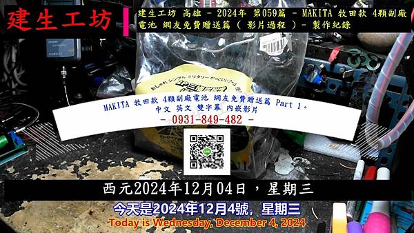 建生工坊 高雄 - 2024年 第059篇 - MAKITA 牧田款 4顆副廠電池 網友免費贈送篇 ( 影片過程 ) - 製作紀錄