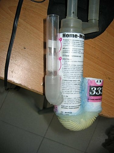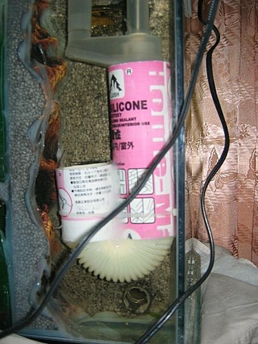 | 想不到還有什麼要做的,所以開始黏上魚缸,有個人說過?對於材料千萬不要節省!不然到時會漏水就白忙一場。 |