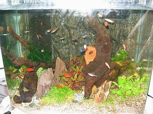 | 這幾天上網看了很多造景相關的資訊!其中有一篇?天然水草缸最能吸引我的注意!因為最符合我的想法?其實我也是這樣認為!一個水草缸?不一定要花大錢買一大堆用具、用品等等,我個人認為造景就是將自己想呈現什麼樣的水族世界呈現出來!讓自己從造景過程之中,發揮想像力,花小錢得到大樂趣,其實網路上有相當多的前輩造景經驗,正好可以使自己避免一些不必要的或一些悲劇產生,希望自己的造景過程,可以讓喜愛水族的人,一起分享及討論。 |